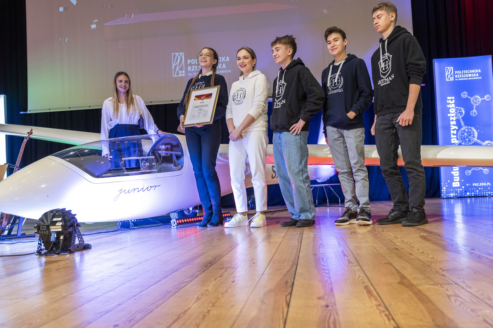 Uczniowie mieli okazję wysłuchania wykładu „Ekologia w transporcie lotniczym” przygotowanego przez dr. hab. inż. Andrzejka Majkę, prof. PRz, kierownika Katedry Inżynierii Lotniczej i Kosmicznej na Wydziale Budowy Maszyn i Lotnictwa. Profesor przybliżył zagadnienia transportu lotniczego, który jest kluczowy dla globalnej gospodarki, napotyka na wyzwania ekologiczne, takie jak emisje gazów cieplarnianych i zanieczyszczenia lokalne. Branża, dążąc do zrównoważonego rozwoju, inwestuje w nowe technologie i poprawę efektywności operacyjnej. Długoterminowe cele obejmują rozwój zeroemisyjnych paliw i innowacyjnych napędów, w tym wykorzystanie wodoru i technologii elektrycznych. Sektor lotniczy koncentruje się więc na zwiększeniu efektywności paliwowej i szuka innowacyjnych rozwiązań, by pogodzić rozwój z ochroną środowiska.
