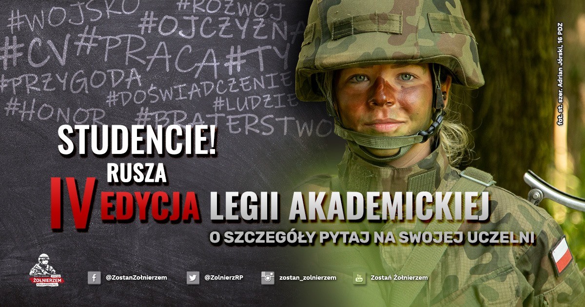 Rozpoczęła się kolejna edycja programu „Legia Akademicka”, którego celem jest m.in. odbudowa rezerw osobowych Sił Zbrojnych RP, zwłaszcza w korpusach szeregowych i podoficerów. Zainteresowanych studentów uczelni publicznych i niepublicznych zapraszamy do składania wstępnych deklaracji o uczestnictwo w projekcie.