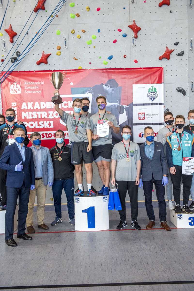 W Akademickich Mistrzostwach Polski w tenisie stołowym udział wzięło dwanaście żeńskich zespołów i piętnaście męskich. Niestety pandemia koronawirusa sprawiła, że kilka drużyn odwołało swój przyjazd. W finale turnieju mężczyzn drużyna Politechniki Rzeszowskiej, w skład której weszli studenci Wydziału Zarządzania Piotr Chodorski, Robert Floras, Daniel Lis, Michał Majcher, Rafał Tatarczuch, pokonała 3:1 ubiegłorocznych zwycięzców z Uczelni Państwowej im. Szymona Szymonowica w Zamościu. W starciu o brązowy medal drużyna Wyższej Szkoły Gospodarki w Bydgoszczy takim samym wynikiem pokonała Uniwersytet Zielonogórski.