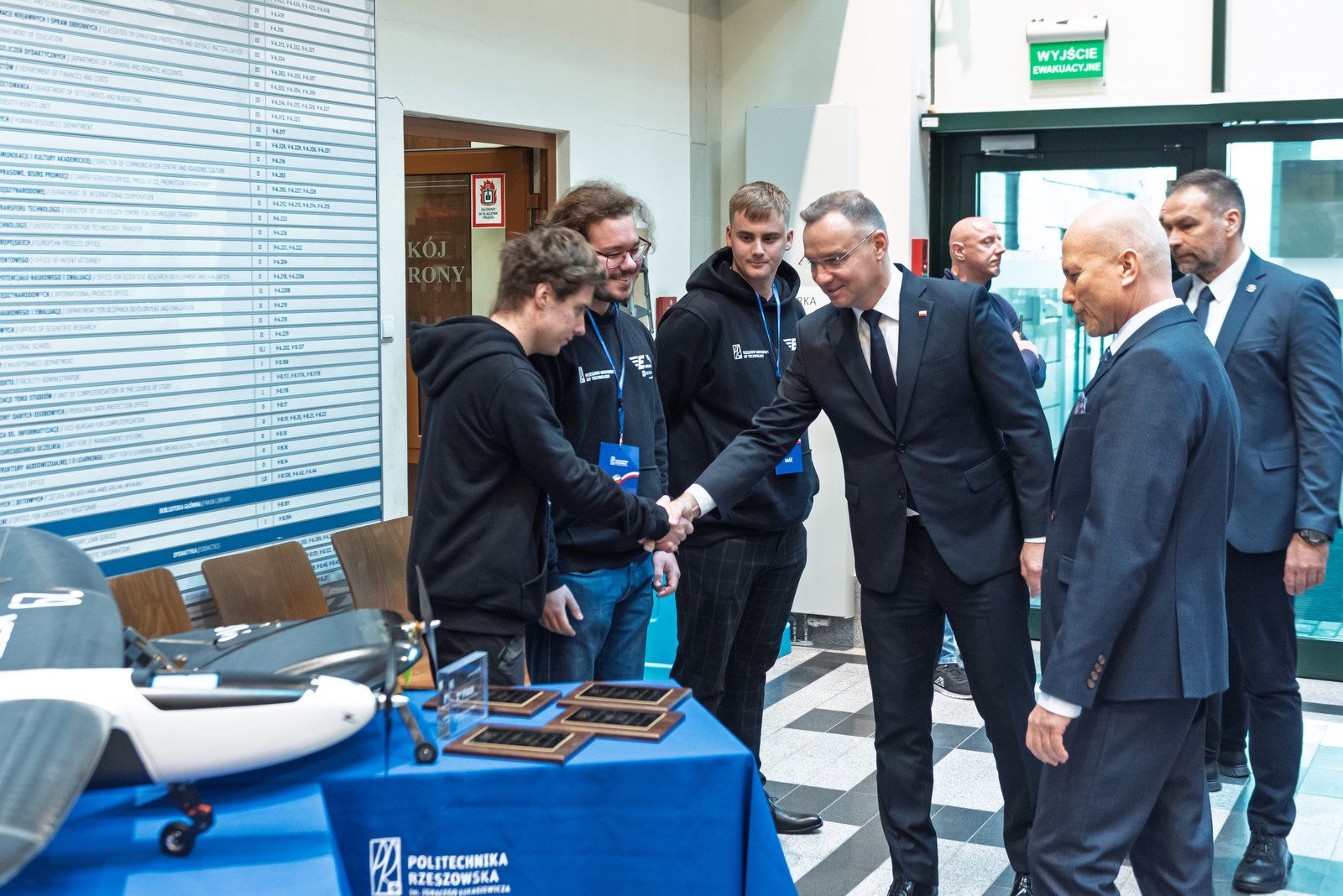 Prezydentowi podczas wizyty towarzyszył zastępca szefa Kancelarii Prezydenta Rzeczypospolitej Polskiej Piotr Ćwik. Politechnikę Rzeszowską reprezentowali prorektor ds. rozwoju i współpracy prof. dr hab. inż. Jarosław Sęp i prorektor ds. kształcenia dr hab. Iwona Włoch, prof. PRz.